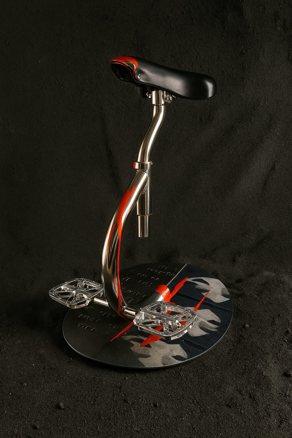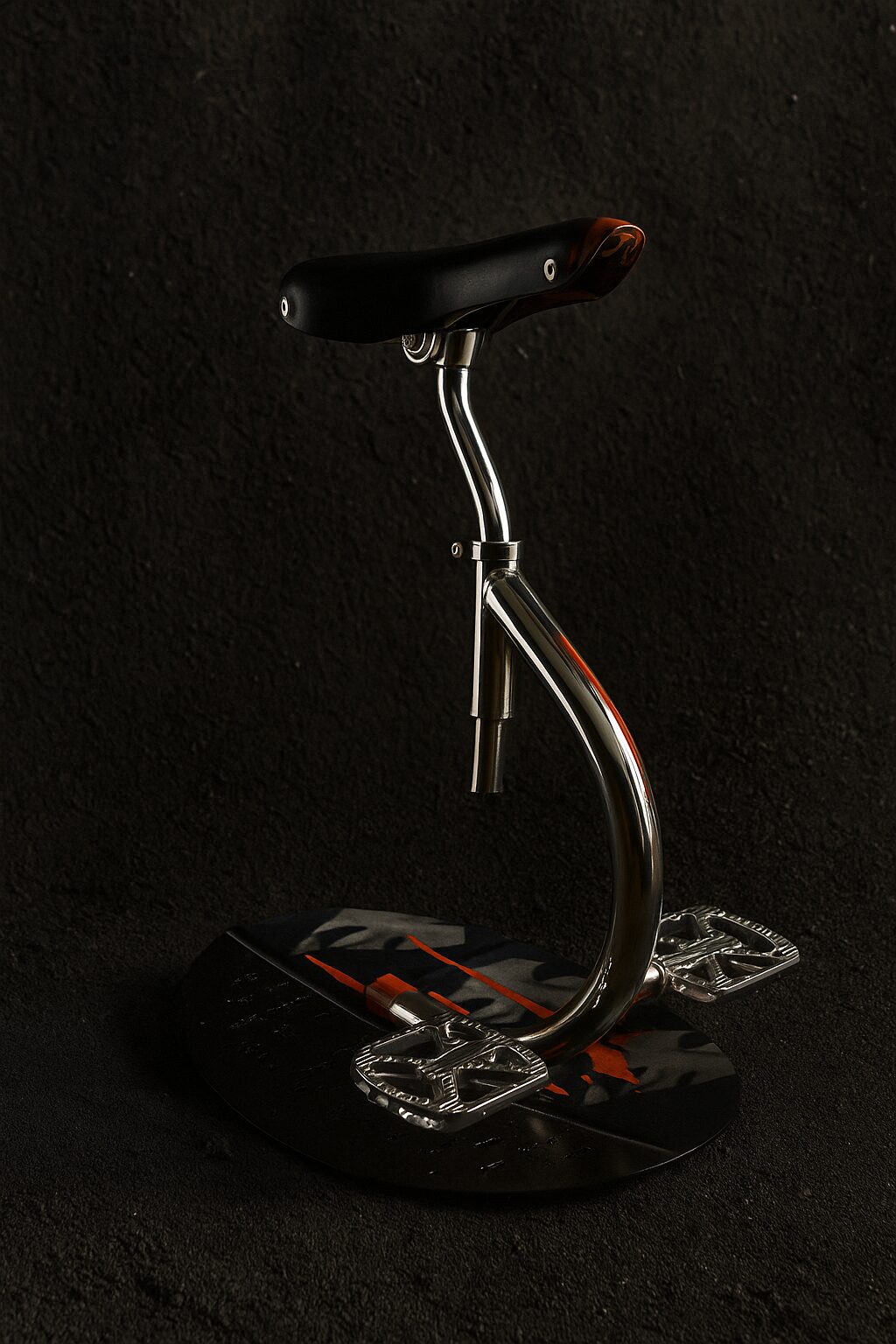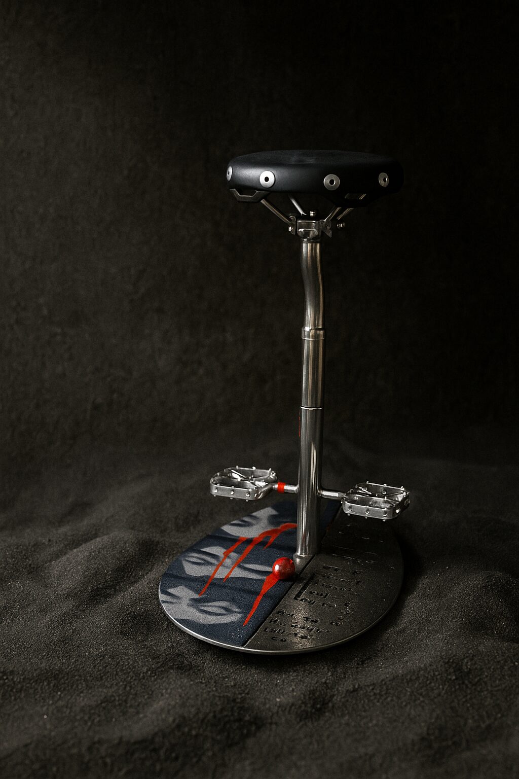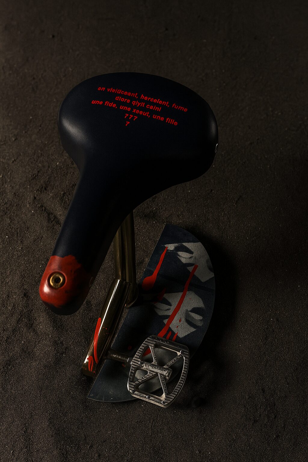 La tradition est représentée par une selle patinée par le temps, son bout rouge est le phallus de certains hommes qui imposent sous couvert de religion.