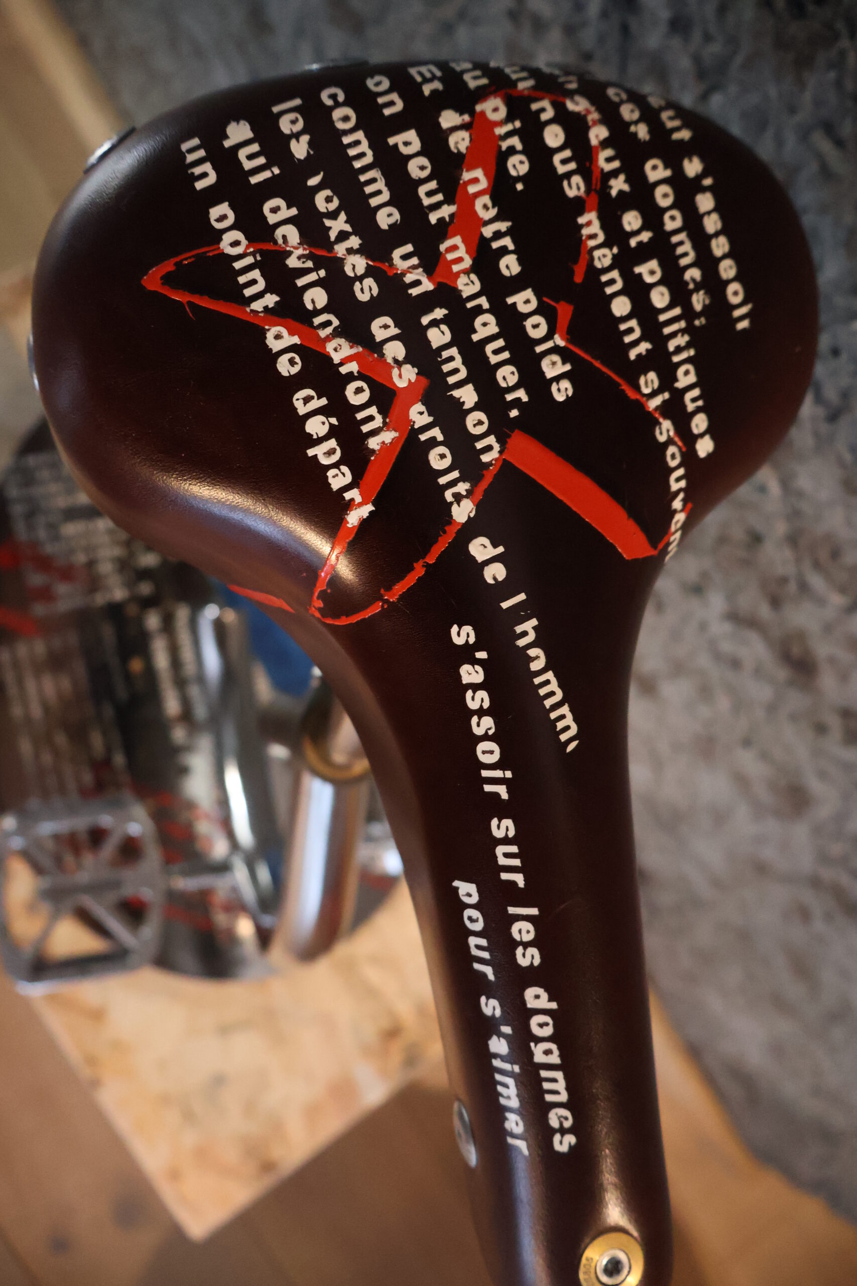 La selle est le buzzer d’annulation de ces chemins de doctrines imposées. Sous la semelle une simple validation, comme un tampon donnant vie à une empreinte symbolique de l’égalité recherchée.