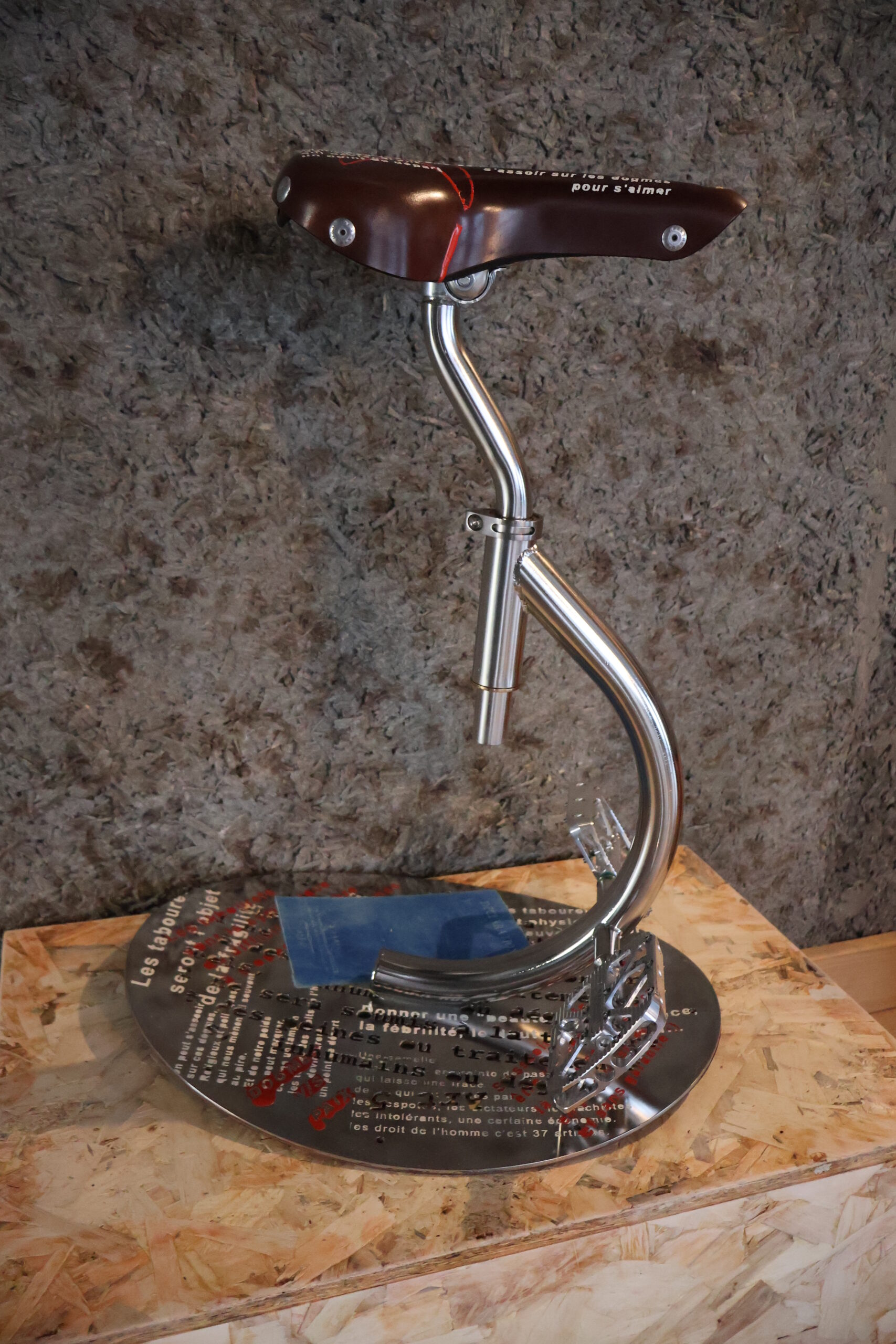 Ce tabouret est un peu le carnet de croquis du concept du tabouret à pédales.
