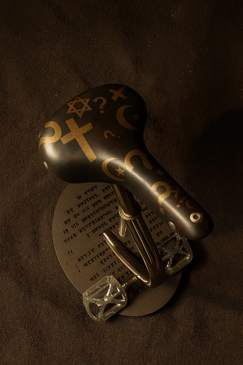 Au sommet des tortueuses croyances, il y a le faste, la débauche d’or et d’arts élitistes, symbolisés par un clin d’œil au célèbre graphisme “Louis Vuitton”